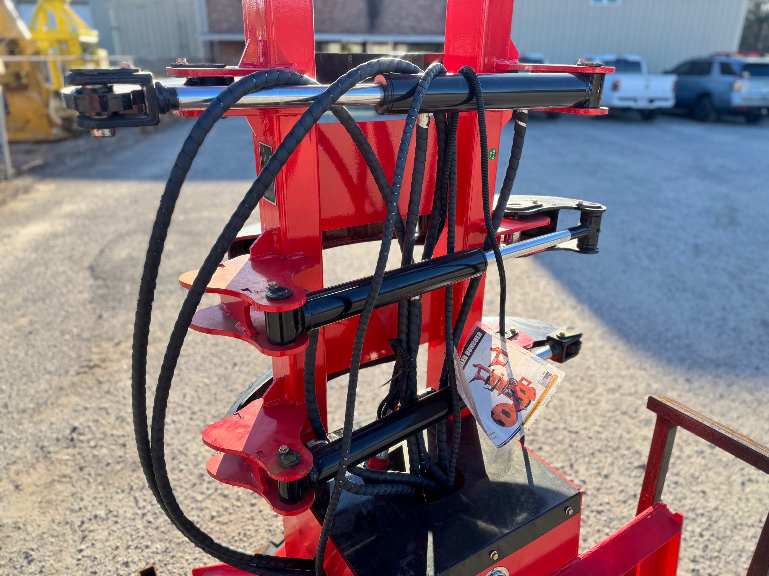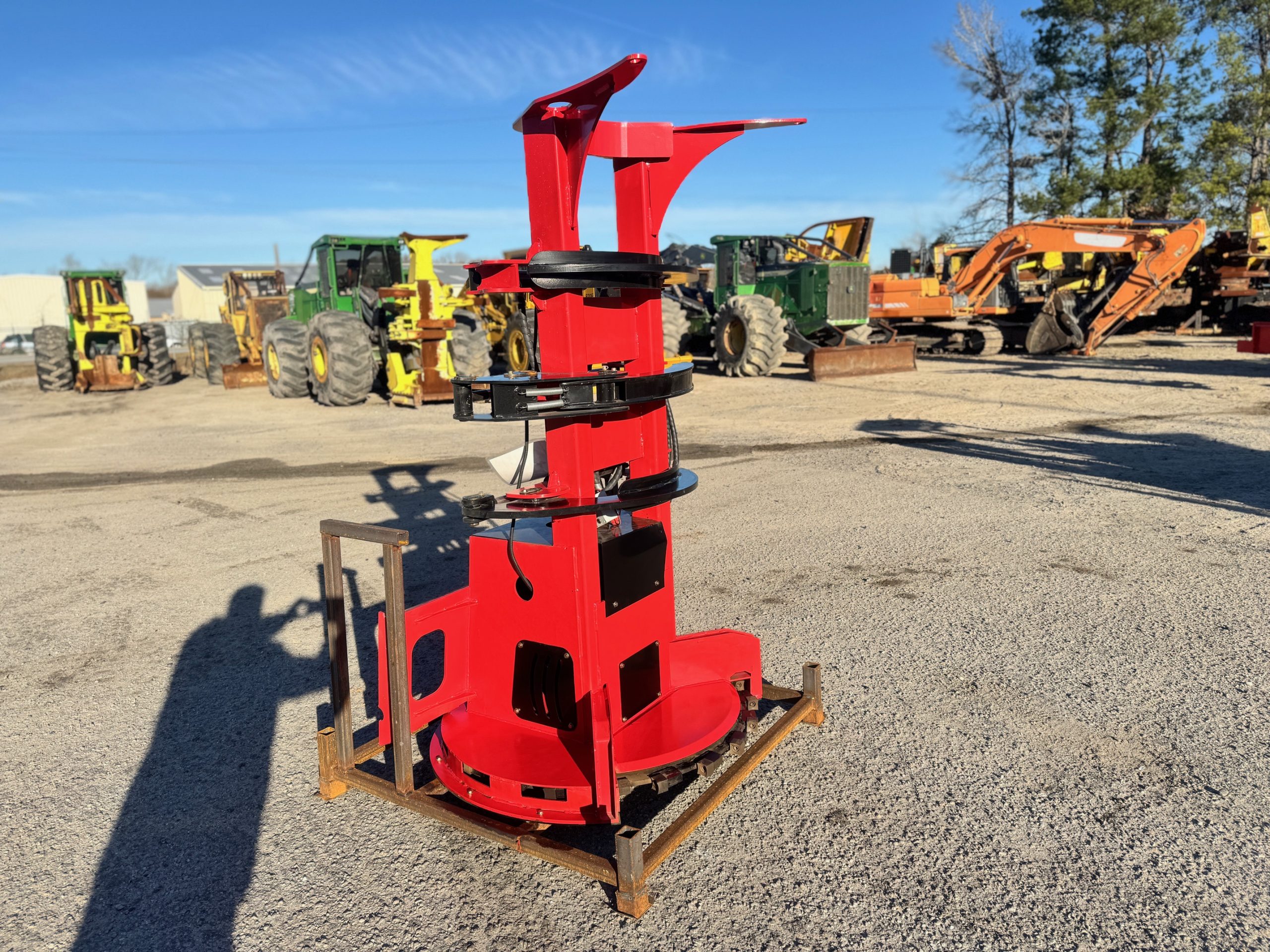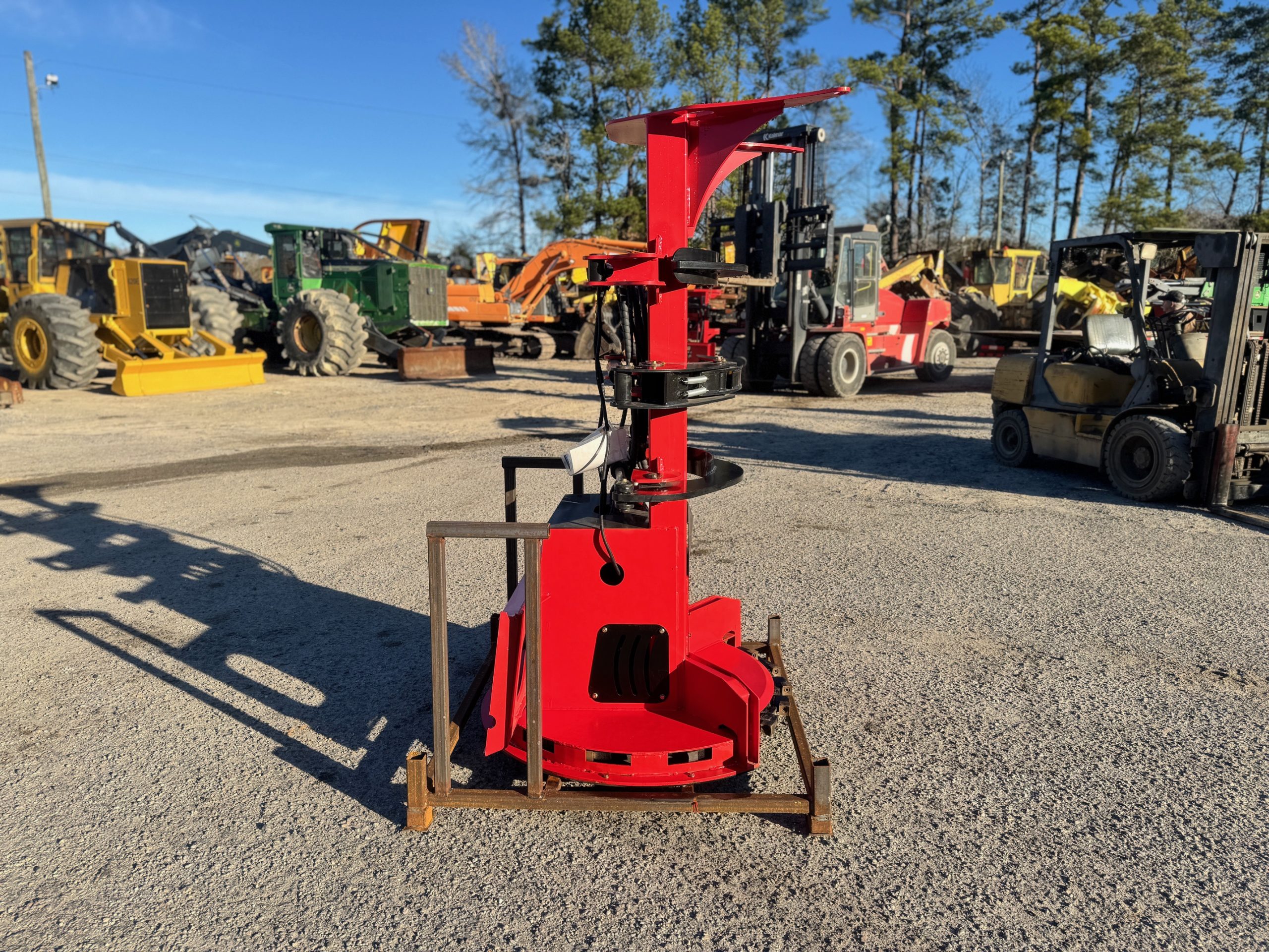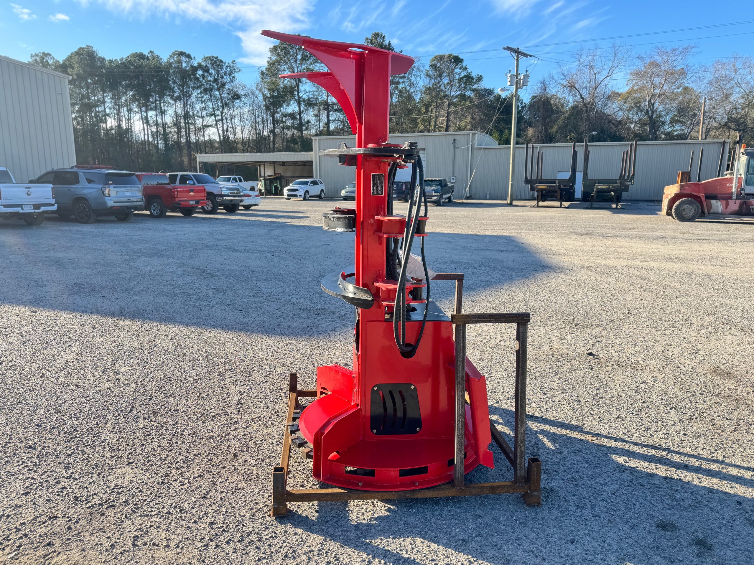 New GIYI FB30 skid steer feller buncher saw head. It has a max opening of 30 inches. Max tree cutting diameter of 13 inches. Disc diameter of 38 inches. Great for any small land clearing or tree removal jobs.