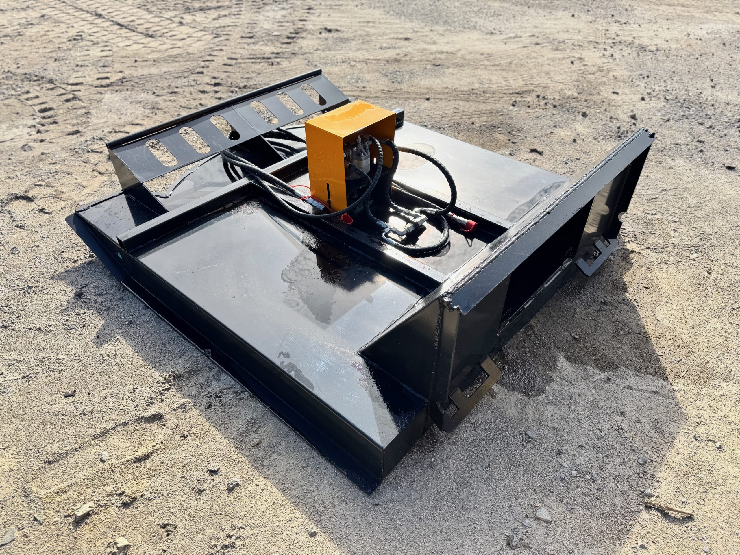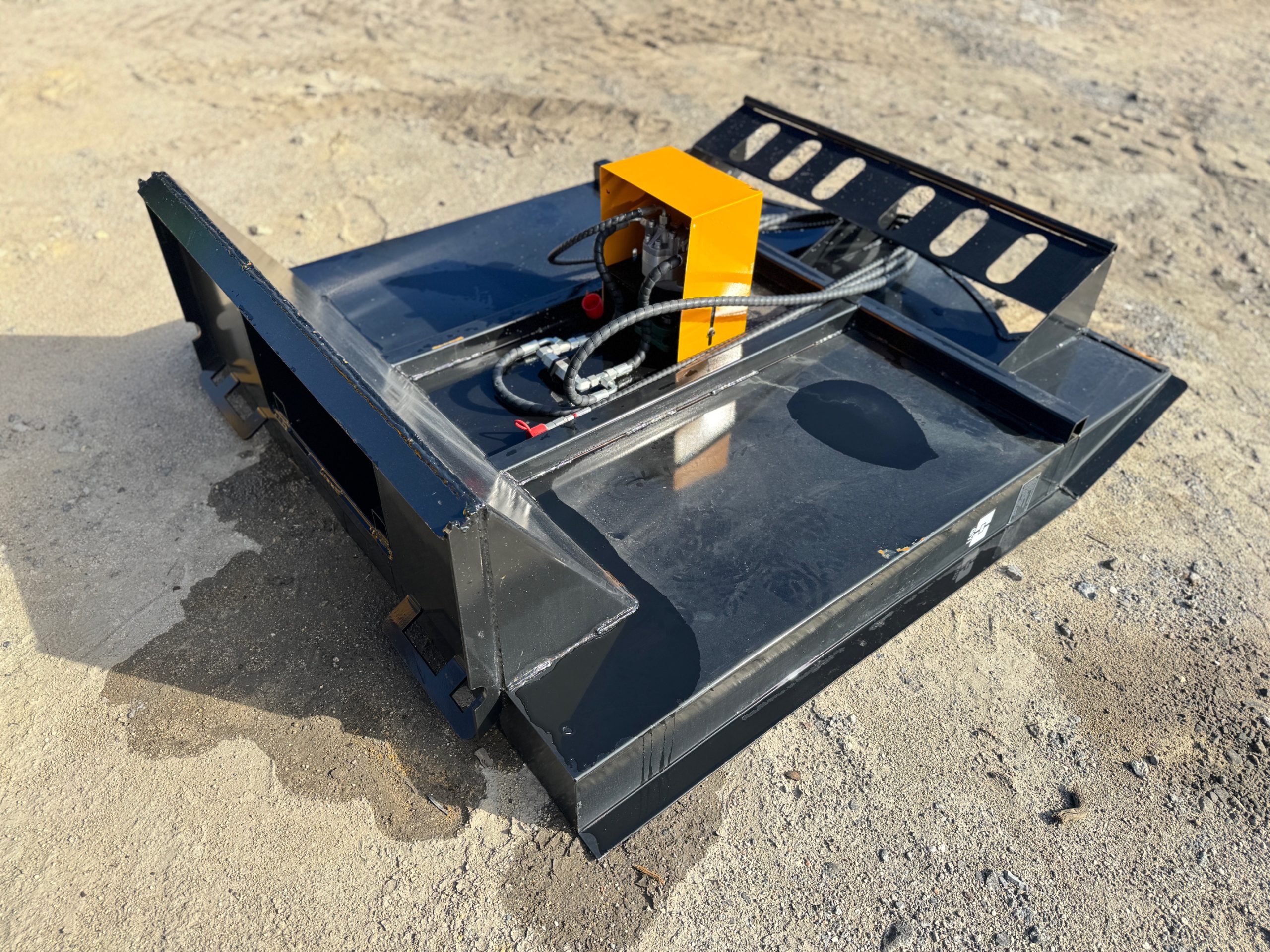 New BC63 57 inch brush cutter. This unit features a direct drive one way check valve hydraulic motor. Skid rails run along the entire mower deck sides. Hydraulic hoses and 1/2″ flat faced couplers included.