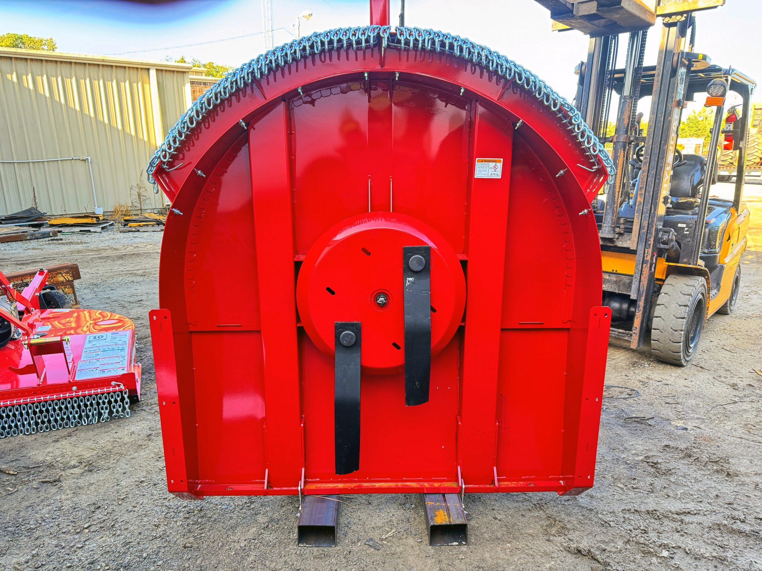 These units were ordered with front and rear chains. Slip clutches drive lines and replaceable skids.
