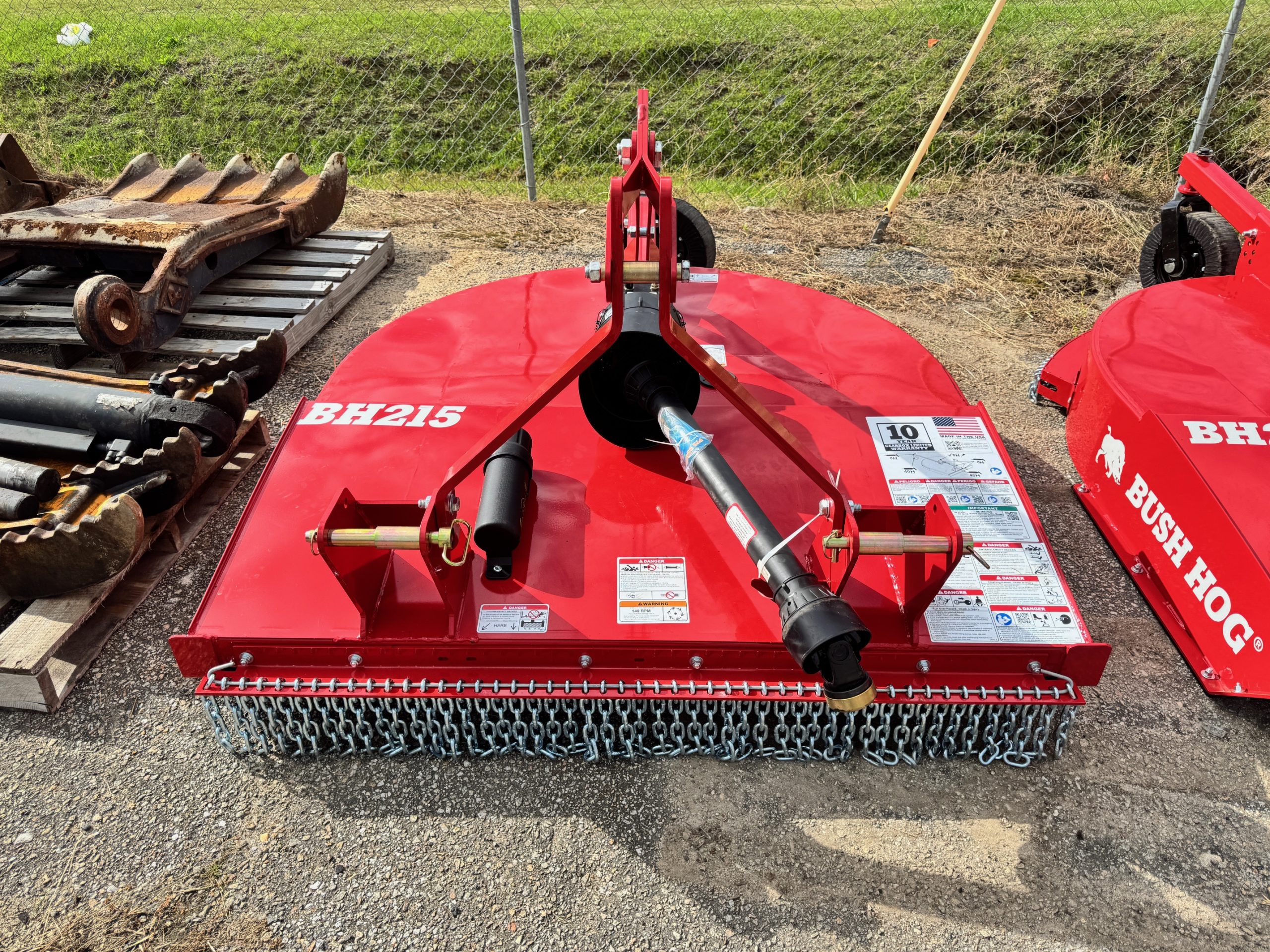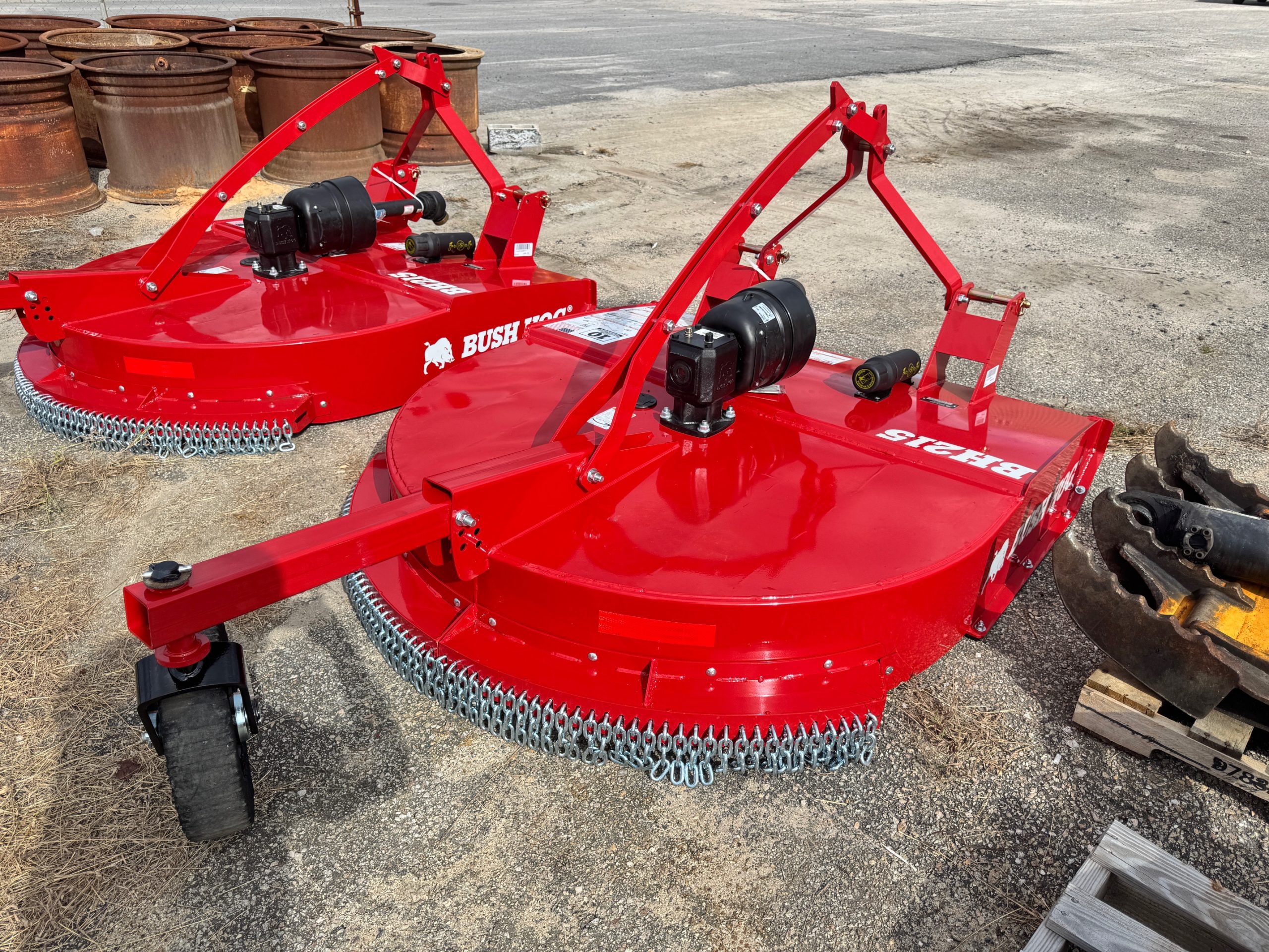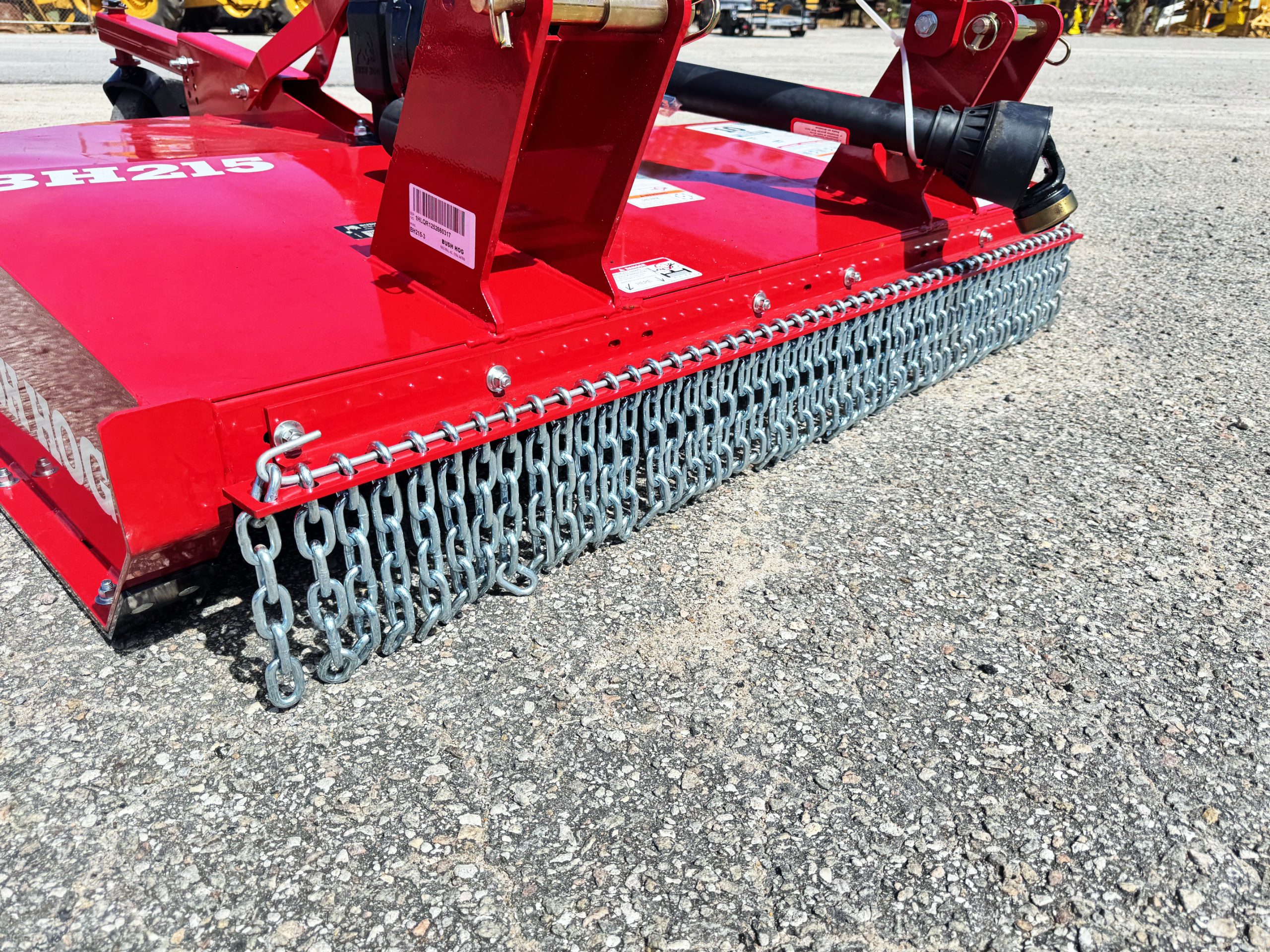 These units are 6ft and were ordered with front and rear chains. Slip clutches drive lines and replaceable skids. THE NEXT GENERATION OF A LEGEND The updated BH210-3 Series Rotary Cutters take the legendary reputation of Bush Hog®’s single-spindles and reinforce them for the modern job site. Engineered with full-length 10-gauge strongbacks, these units are built to withstand heavy-duty stress from front to back—specifically enhancing the tailwheel structure for superior longevity. We’ve added reinforced plates to the bottom of the rear sidebands, providing the extra armor needed when backing into dense vegetation. Whether you’re tackling tall grass, pesky weeds, or stubborn brush, these authentic, American-built cutters are designed to outlast and outperform the competition. PERFORMANCE ENGINEERING Capacity & Power: 72-inch cutting width powered by a rugged 65HP gearbox. High-Volume Efficiency: Taller sidebands allow for increased cutting volume and faster discharge. Clean Operation: Smooth top deck design prevents debris buildup and makes cleanup effortless. Precision Blades: Equipped with custom-forged, 4-inch wide heat-treated blades. Ready to Work: Fully Quick Hitch compatible for fast, seamless attachment. HEAVY-DUTY CONSTRUCTION Military-Grade Welding: Features a continuously welded deck and a fully welded tailwheel mount. Strategic Reinforcement: Full-length strongbacks and reinforced rear sidebands for maximum structural integrity. Industrial Hitch: Double-braced lower hitch lugs designed for high-stress environments. Field-Ready Tires: Puncture-proof laminated tailwheels ensure zero downtime. Safety & Protection: Outfitted with single-row front and rear chains, replaceable skids, and reliable slip clutches.