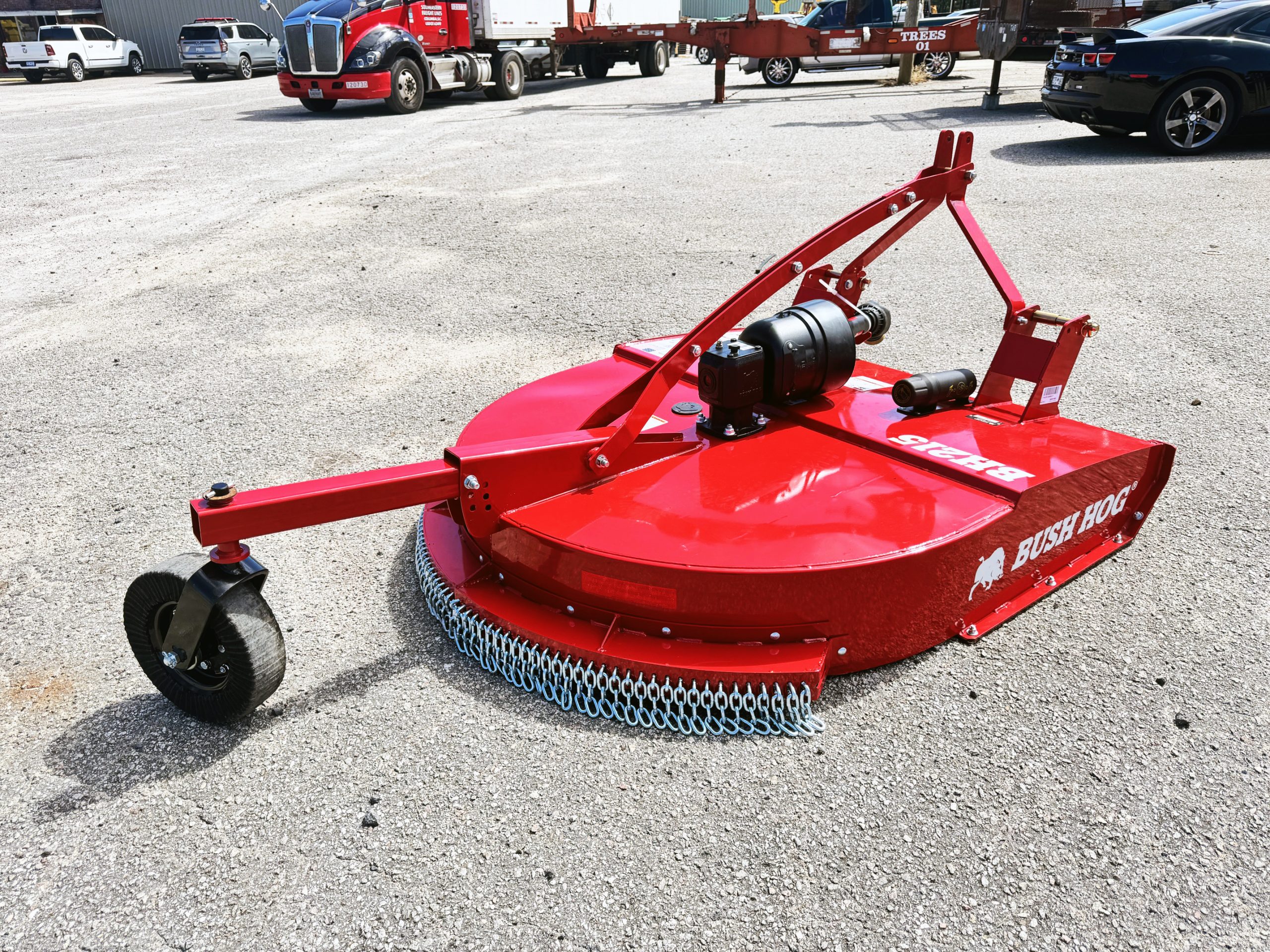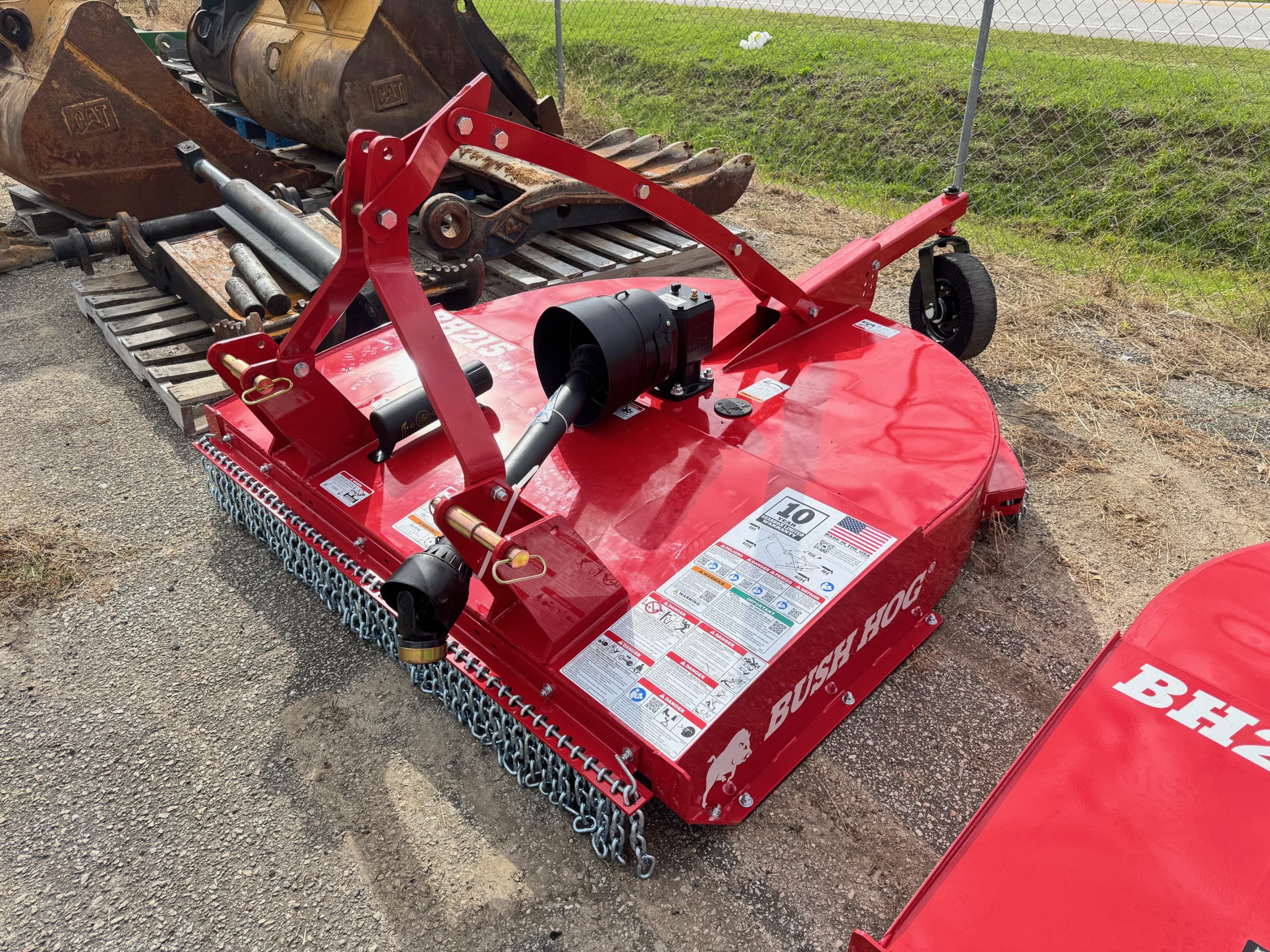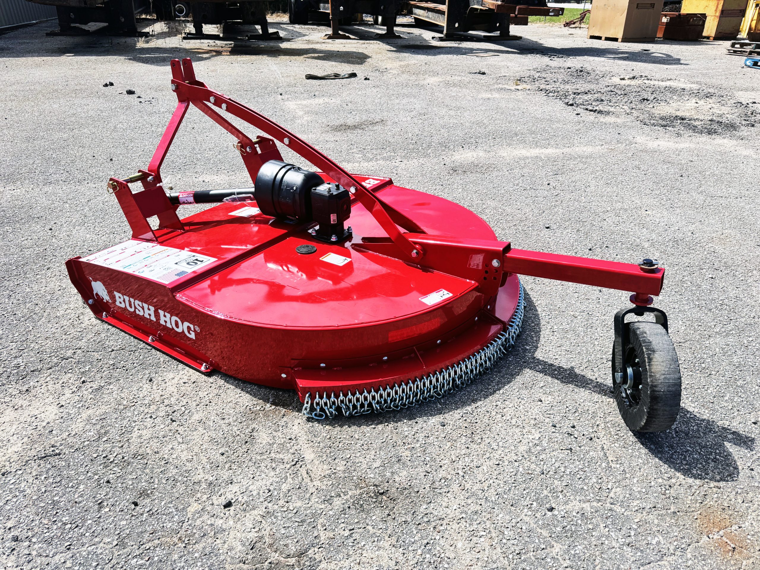 These units are 6ft and were ordered with front and rear chains. Slip clutches drive lines and replaceable skids. THE NEXT GENERATION OF A LEGEND The updated BH210-3 Series Rotary Cutters take the legendary reputation of Bush Hog®’s single-spindles and reinforce them for the modern job site. Engineered with full-length 10-gauge strongbacks, these units are built to withstand heavy-duty stress from front to back—specifically enhancing the tailwheel structure for superior longevity. We’ve added reinforced plates to the bottom of the rear sidebands, providing the extra armor needed when backing into dense vegetation. Whether you’re tackling tall grass, pesky weeds, or stubborn brush, these authentic, American-built cutters are designed to outlast and outperform the competition. PERFORMANCE ENGINEERING Capacity & Power: 72-inch cutting width powered by a rugged 65HP gearbox. High-Volume Efficiency: Taller sidebands allow for increased cutting volume and faster discharge. Clean Operation: Smooth top deck design prevents debris buildup and makes cleanup effortless. Precision Blades: Equipped with custom-forged, 4-inch wide heat-treated blades. Ready to Work: Fully Quick Hitch compatible for fast, seamless attachment. HEAVY-DUTY CONSTRUCTION Military-Grade Welding: Features a continuously welded deck and a fully welded tailwheel mount. Strategic Reinforcement: Full-length strongbacks and reinforced rear sidebands for maximum structural integrity. Industrial Hitch: Double-braced lower hitch lugs designed for high-stress environments. Field-Ready Tires: Puncture-proof laminated tailwheels ensure zero downtime. Safety & Protection: Outfitted with single-row front and rear chains, replaceable skids, and reliable slip clutches.