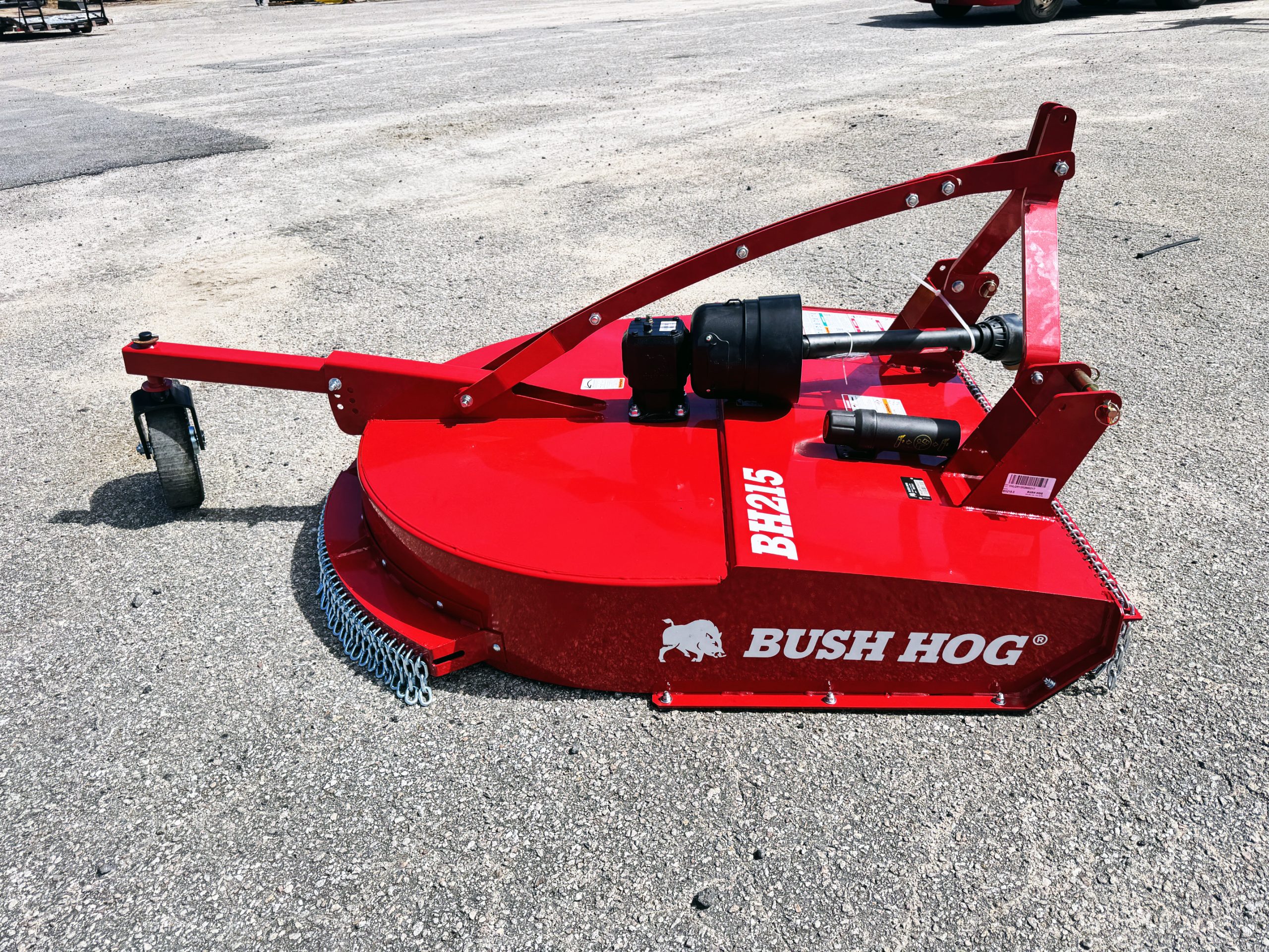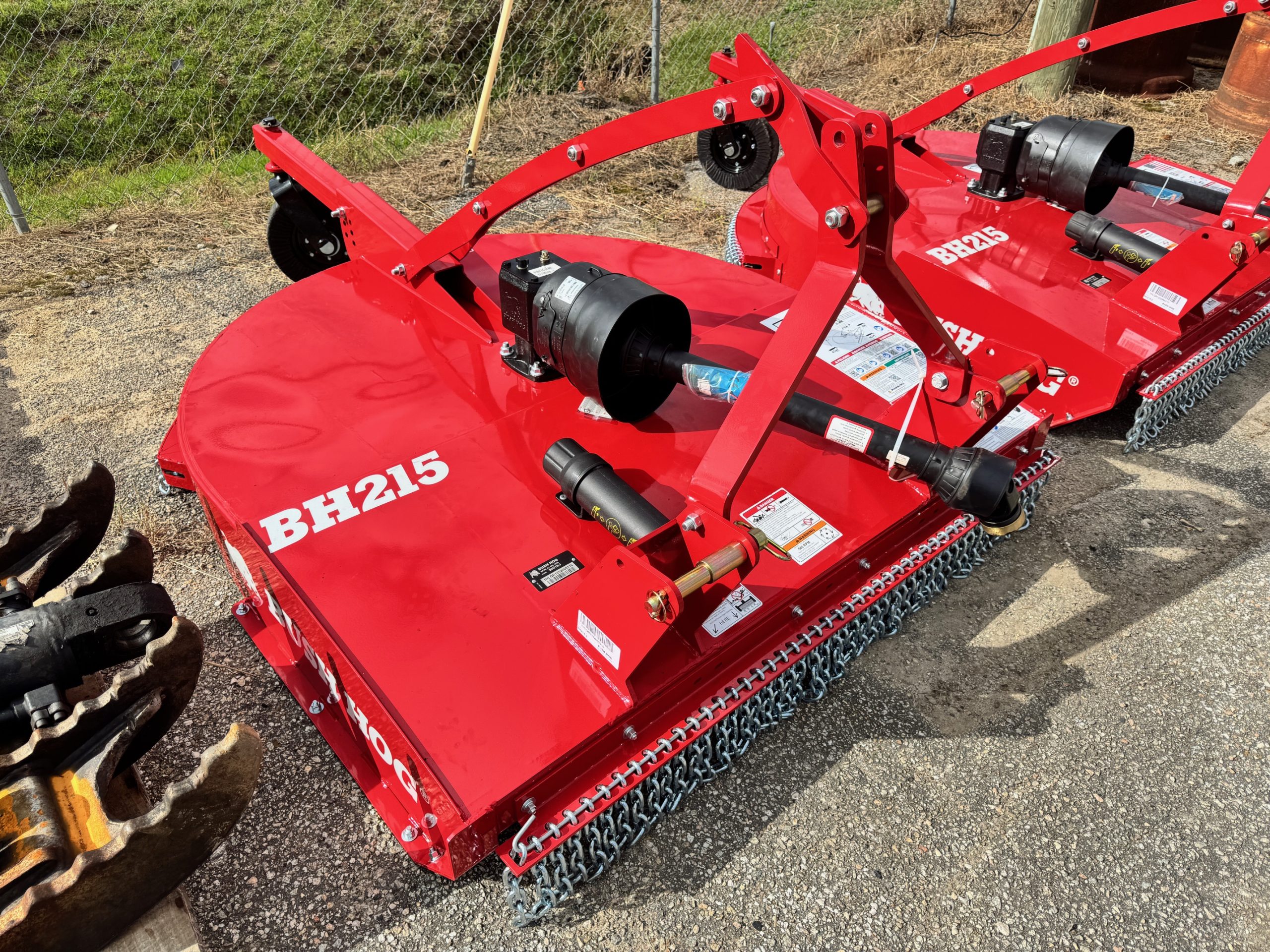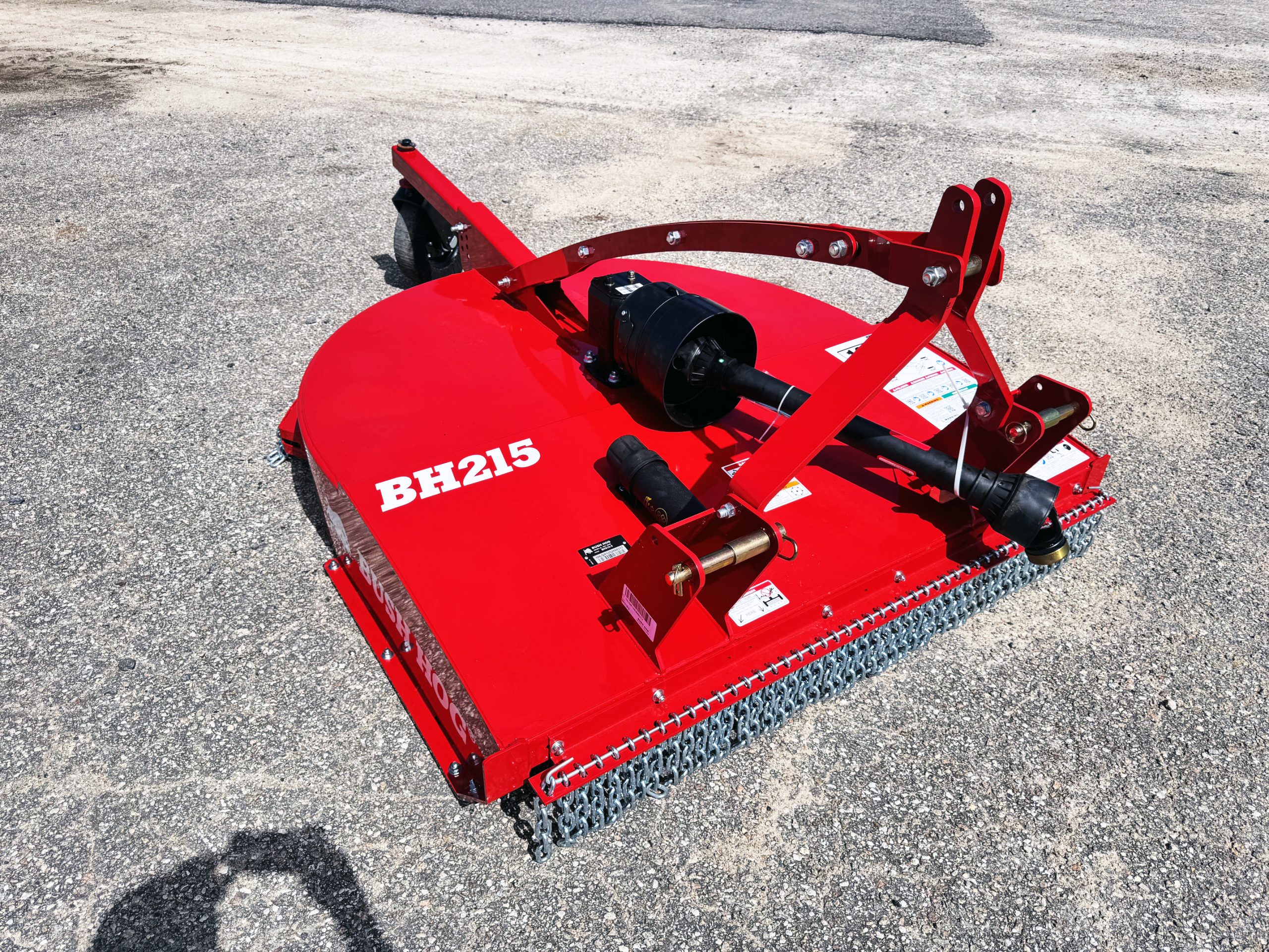 These units are 5ft and were ordered with front and rear chains. Slip clutches drive lines and replaceable skids. THE NEXT GENERATION OF A LEGEND The updated BH210-3 Series Rotary Cutters take the legendary reputation of Bush Hog®’s single-spindles and reinforce them for the modern job site. Engineered with full-length 10-gauge strongbacks, these units are built to withstand heavy-duty stress from front to back—specifically enhancing the tailwheel structure for superior longevity. We’ve added reinforced plates to the bottom of the rear sidebands, providing the extra armor needed when backing into dense vegetation. Whether you’re tackling tall grass, pesky weeds, or stubborn brush, these authentic, American-built cutters are designed to outlast and outperform the competition. PERFORMANCE ENGINEERING Capacity & Power: 72-inch cutting width powered by a rugged 65HP gearbox. High-Volume Efficiency: Taller sidebands allow for increased cutting volume and faster discharge. Clean Operation: Smooth top deck design prevents debris buildup and makes cleanup effortless. Precision Blades: Equipped with custom-forged, 4-inch wide heat-treated blades. Ready to Work: Fully Quick Hitch compatible for fast, seamless attachment. HEAVY-DUTY CONSTRUCTION Military-Grade Welding: Features a continuously welded deck and a fully welded tailwheel mount. Strategic Reinforcement: Full-length strongbacks and reinforced rear sidebands for maximum structural integrity. Industrial Hitch: Double-braced lower hitch lugs designed for high-stress environments. Field-Ready Tires: Puncture-proof laminated tailwheels ensure zero downtime. Safety & Protection: Outfitted with single-row front and rear chains, replaceable skids, and reliable slip clutches.