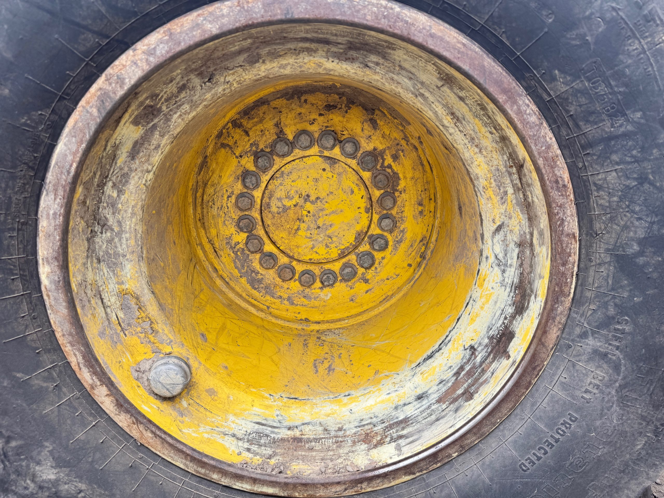 Cat 20 lug no dual rim mounted on a Primex tire. Please call 843-761-8220 for pricing and availability. Tires are available for purchase with or without the rim.